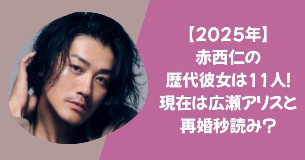 歌手、俳優として活躍する赤西仁さん。 これまで歌手や女優、モデル、さらには一般女性まで幅広くの女性と噂になり、週刊誌でも熱愛が報じられていますね。 2023年には黒木メイサさんと離婚を発表し、2025年現在は独身で、広瀬アリスさんとの交際が報じら...